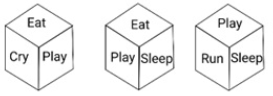 Six words Eat, Cry, Play, Sleep, Run and Bath are written on different faces of a dice. Three positions of this dice are shown in the figure. Find the word on the face opposite to Eat.