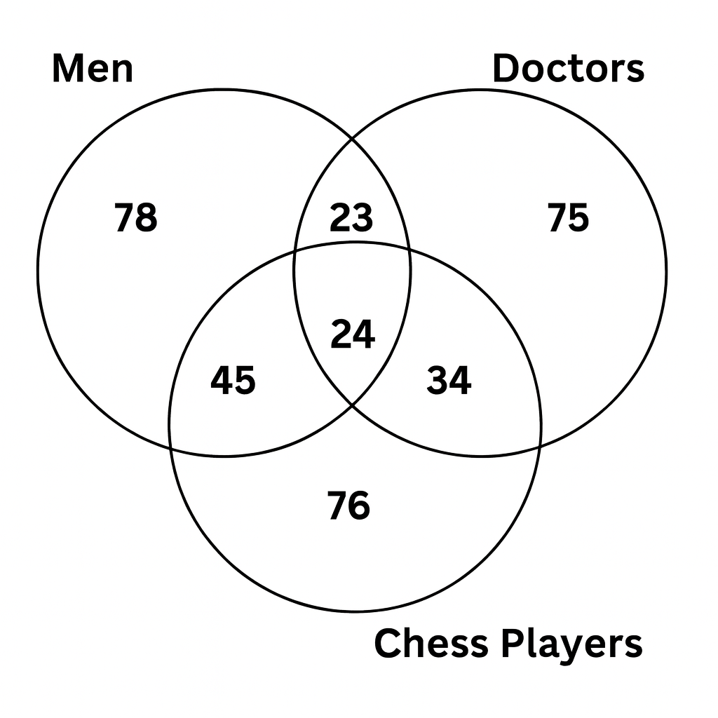 The following Venn diagram shows Men's profession as Doctors and Chess Players: