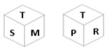 Six letters S, T, M, P, R and C are written on different faces of a dice. Two positions of this dice are shown in the figures below. Find the letter on the face opposite to M.