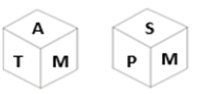Six letters A, T, M, P, S and R are written on different faces of a dice. Two positions of this dice are shown in the figure below.