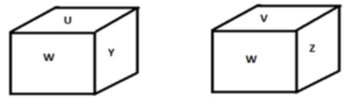 Six letters U, V, W, X, Y and Z are written on different faces of a dice. Two positions of this dice are shown in the figure below. Find the letter on the face opposite to Z.