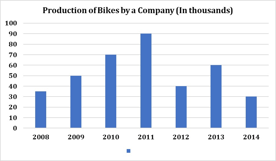 The given bar graph shows the production of bikes by a company (in thousands) over the years