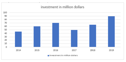 The given bar graph shows the foreign direct investment (in millino dollars) in country A from all over the world oevr the given years