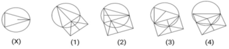 Figure X is followed by four figures numbered (1), (2), (3), (4). Identify the figure among the four in which figure X is embedded (i.e. contains figure X in the same form).