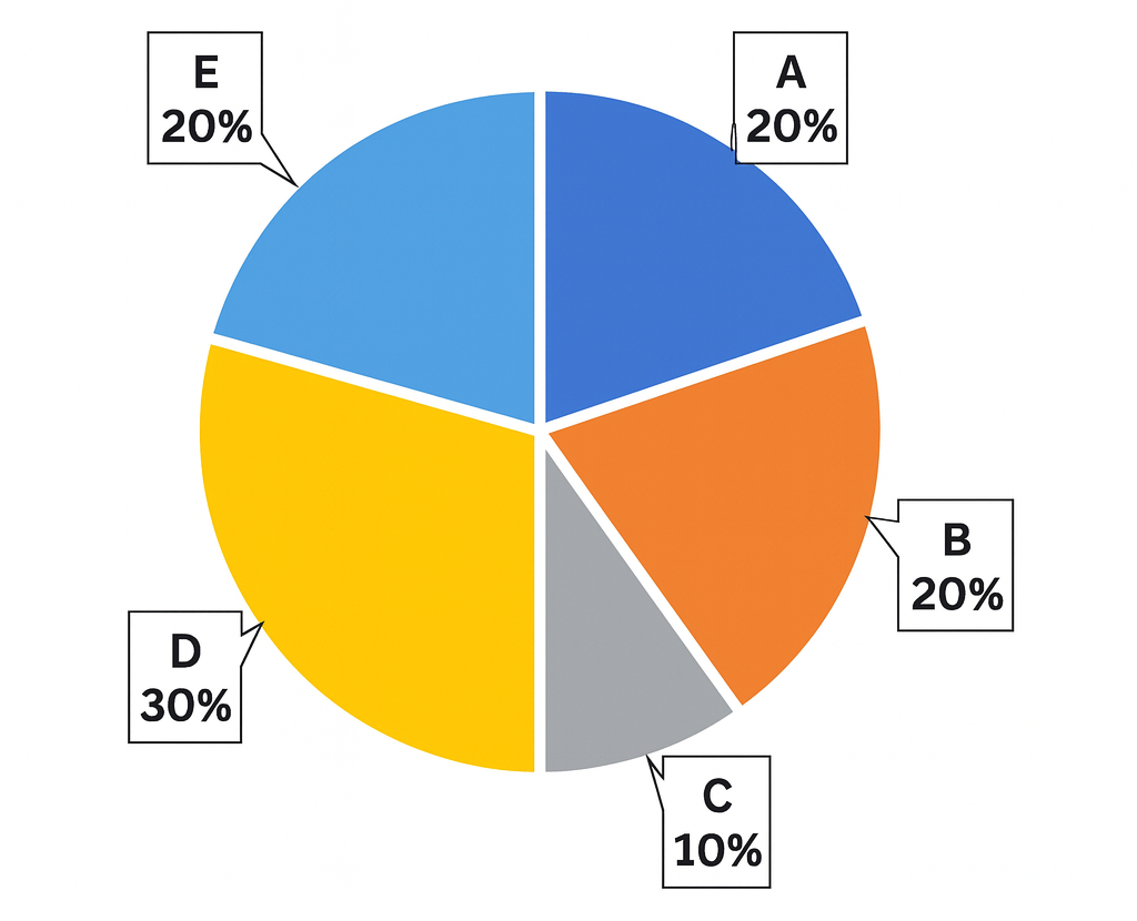 Percentage distribution of employees in different departments of a company.