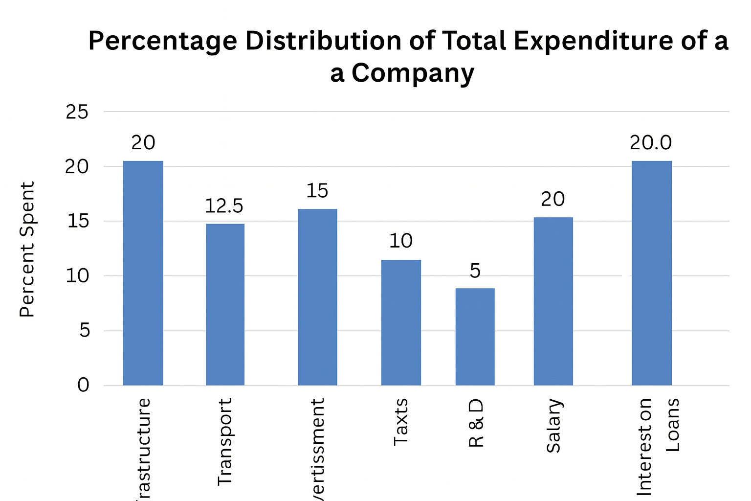 In 2010, a company's total expenditure was categorised under different expense heads, and their % distribution is illustrated in the bar graph shown below.