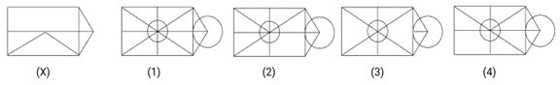 Figure X is followed by four figures numbered (1), (2), (3), (4). Identify the figure among the four in which figure X is embedded (i.e. contains figure X in the same form).