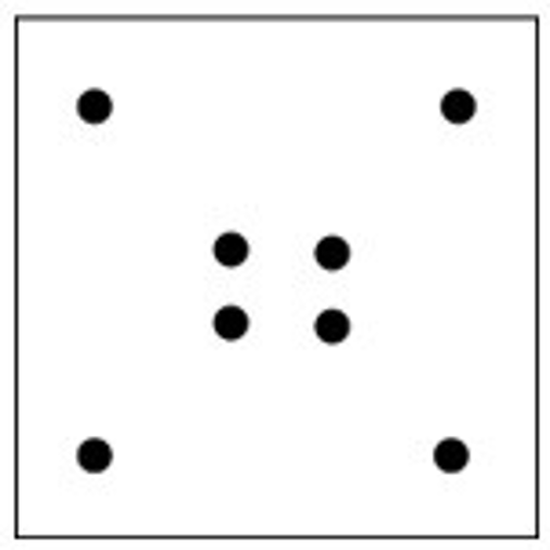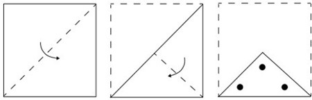 A square sheet of paper is folded along the dotted line successively along the directions shown and is then punched in the last as shown. How would the paper look when unfolded?