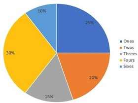 The given pie-chart shows the percentage distribution of runs scored by a batsman in a test innings. Study the chart and answer the question that follows.