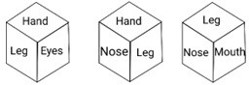 Six words Hand, Leg, Eyes, Nose, Mouth and Ear are written on different faces of a dice. Three positions of this dice are shown in the figure. Find the word on the face opposite to Hand.