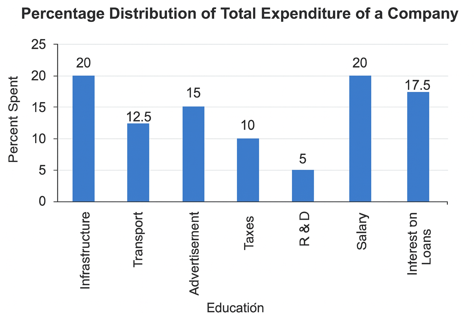 In 2010,a company's total expenditure was categorised under different expense heads, and their percentage distribution is illustrated in the bar graoh below.