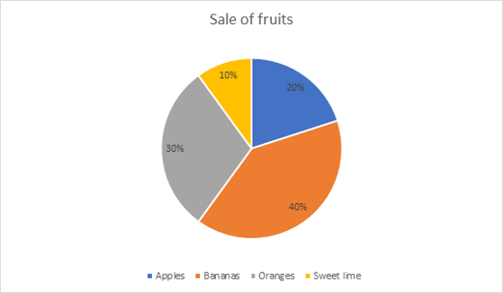 The given pie chart shows the sales of different fruits in a day for a shop.