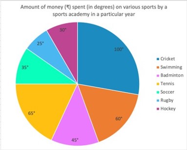 The given pie chart shows the amount of money (₹) spent (in degrees) on various sports by a sports academy in a particular year. Study the pie chart and answer the question that follows.