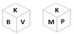 Two different positions of the same dice with faces K, B, V, M, P and T are shown below. Select the letter that will be on the face opposite to the one having B.