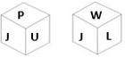 Six letters P, J, U, W, L and K are written on different faces of a dice. Two positions of this dice are shown in the figures below. Find the letter on the face opposite to P.
