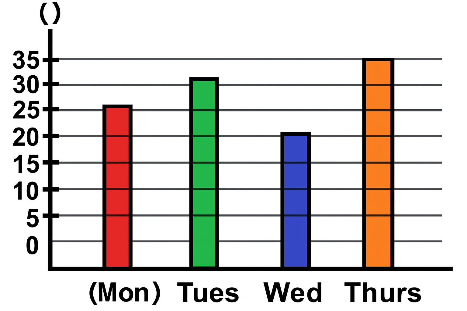 The bar graph shows the number of students present in a class on four days. The average number of students present on Monday, Tuesday and Wednesday is: