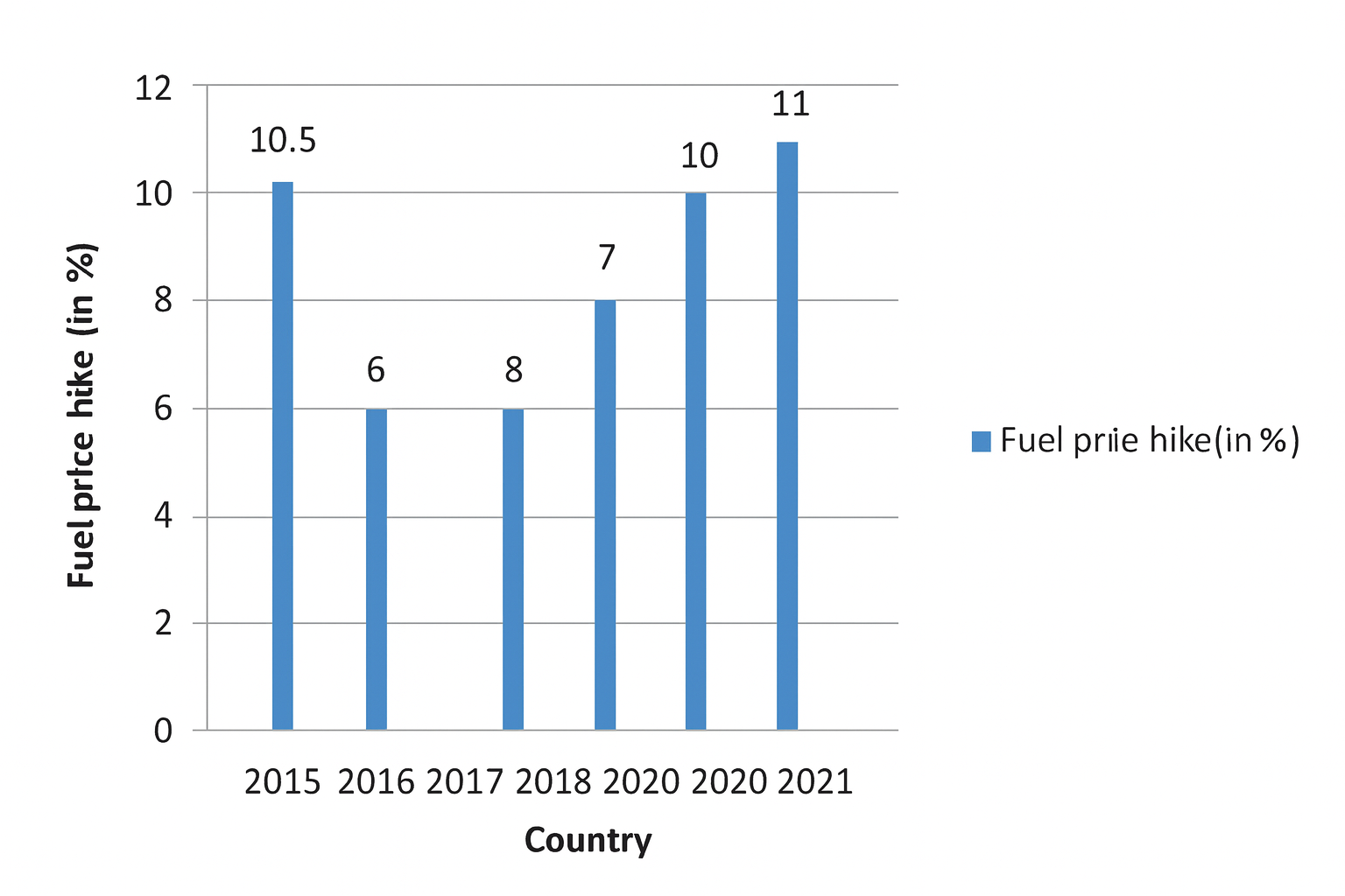 The following bar chart shows the year wise percentage hike in the fuel price with respect to the previous year.