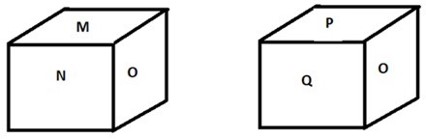 Six letters M, N, O, P, Q and R are written on different faces of a dice. Two positions of this dice are shown in the figure below. Find the letter on the face opposite to O.