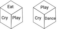 Six words ‘Eat’, ‘Play’, ‘Cry’, ‘Sleep’, ‘Dance’ and ‘Run’ are written on different faces of a dice. Two positions of this dice are shown in the figure below. Find the word on the face opposite to ‘Eat’.