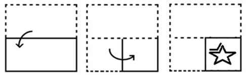 The sequence of folding a piece of paper and the manner in which the folded paper has been cut is shown in the following figures. How would this paper look when unfolded?