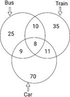 Study the given diagram carefully and answer the question that follows. The numbers in different sections indicate the number of persons travelling by different modes of transport.