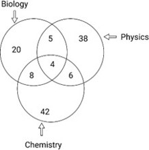 Study the given diagram carefully and answer the question that follows. The numbers in different sections indicate the number of students who like to study different subjects.
