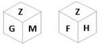Two different positions of the same dice with faces Z, G, M, F, H and S are shown below. Select the letter that will be on the face opposite to the one having G.