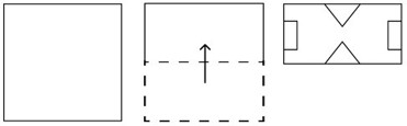 A square sheet of paper is folded along the dotted line successively along the directions shown and is then punched in the last. How would the paper look when unfolded?