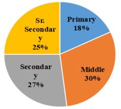 Students of Primary, Middle, Secondary and Sr. Secondary classes collected donation for a Relief Fund as shown in the pie chart.