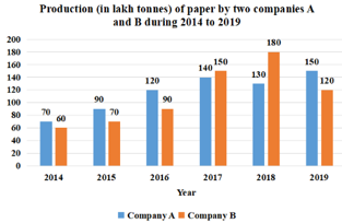 The average production of paper by company B in 2014, 2017 and 2018 was \(13\dfrac{1}{3}\%\) less than the production of paper by company A in the year: