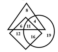 In the Venn Diagram given below, if 'Rhombus' represents ‘Psychologists’, 'Triangle’ represents 'Corporate Employees’ and ‘Circle’ represents ‘Fathers’, then how many Psychologists are Corporate Employees but NOT Fathers?