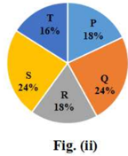 The pie charts represent the distribution of candidates who were enrolled for Bank Clerical Examination Fig (i) and the candidates (out of those enrolled) who passed the examination Fig (ii) in five different institutes P,Q. R, S and T.