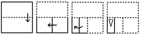 The sequence of folding a piece of paper and the manner in which the folded paper has been cut is shown in the following figures. How would this paper look when unfolded?