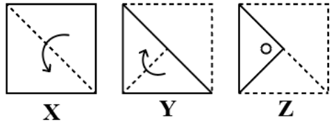 A paper is folded and cut as shown in the following figures (X,Y and Z). How will it appear when unfolded?