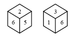 Two different positions of the same dice are shown. Select the number that will be at the top if '1' is at the bottom.