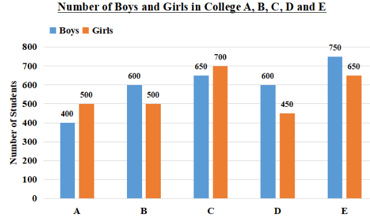 What is the ratio of the boys taken together in colleges A, B and C to the girls taken together in all 5 colleges?