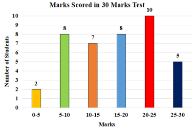 The histogram shows the marks scored by 40 students in a test with maximum 30 marks.