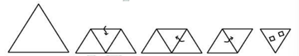 The sequence of folding a piece of paper and the manner in which the folded paper has been cut is shown in the following figures. How would this paper look when unfolded?