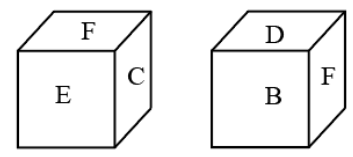 Two different positions of the same dice are shown. Select the letter that will be on the face opposite to the face showing 'C’.
