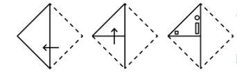 The sequence of folding a piece of paper and the manner in which the folded paper has been cut is shown in the following figures. How would this paper look when unfolded?