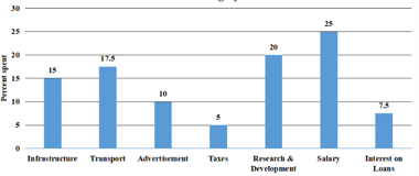 Study the given graph which shows the % distribution of total expenditure of a company under various heads during a year and answer the question that follows.