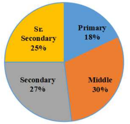 Students of Primary, Middle, Secondary and Sr. Secondary classes collected donation for a Relief Fund as shown in the pie chart. If the donation collected from Middle classes was ₹6,750, then what would be the total amount of money collected by Secondary and Sr. Secondary classes?
