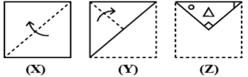 The sequence of folding a piece of paper and the manner in which the folded paper has been cut is shown in the following figures. How would this paper look when unfolded?