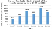 The bar graphs represent the amount invested in raw materials (in ₹ crore) and the sale of the products, by a textile company in the years 2007— 2012. The X-axis represents the years. The Y-axis represents the amount invested in raw materials (in ₹ crore) in figure 1 and sale of products in figure 2, respectively.