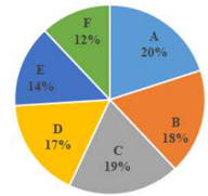 The given pie chart represents the percentage-wise distribution of 300 students of class X in a school in six different sections A, B, C, D, E and F.