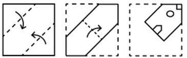 The sequence of folding a piece of paper and the manner in which the folded paper has been cut is shown in the following figures. How would this paper look when unfolded?