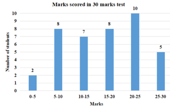 The given histogram shows the marks scored by 40 students in a test of maximum 30 marks.