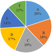 The pie chart represents the percentage-wise distribution of 300 students of class X in a school in six different sections A, B, C, D, E and F.