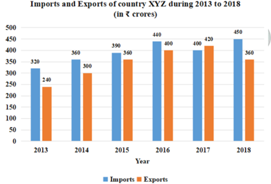 In the year 2019, if the imports increased by the same percentage as that in 2018 over its previous year, then what was the amount (in ₹ crores) of the imports in the year 2019?