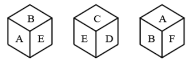 Three different positions of the same dice are shown. Select the letter that will be on the face opposite to the face having the letter F.